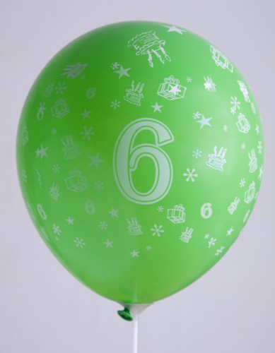 Ballons 12" - Chiffre 6 Imprimé Blanc TOT Assortis - Sachet de 100