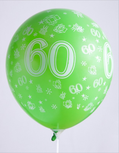 Ballons 12" - Chiffre 60 Imprimé Blanc TOT Assortis - Sachet de 100