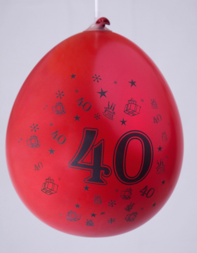 Ballons 14" - Chiffre 40 Rouge Rubis Imprimé 1 Face - Sachet Cavalier de 8