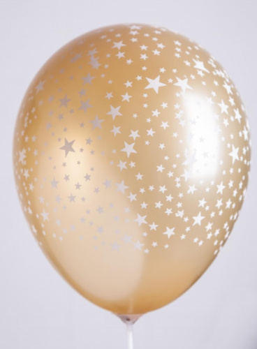 Ballons 14" - Imprimé Blanc Métal Or TOT Etoiles - Sachet de 100