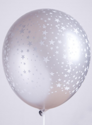 Ballons 14" - Imprimé Blanc Métal TOT Etoiles Assortis - Sachet de 100