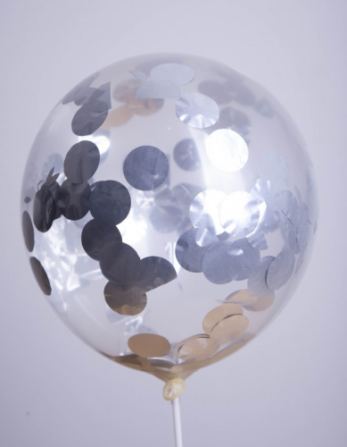 Ballons 12" - Transparent Confettis Or / Argent / Noir - Pochette de 6