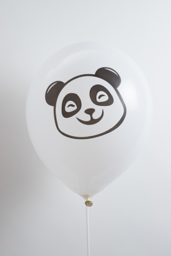 Ballons 12" - Blanc Imprimé Panda Noir - Sachet Cavalier de 8