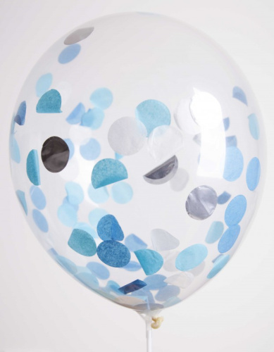 Ballons 12" - Transparent Confettis Bleu - Pochette de 6