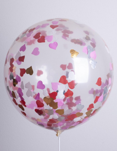Ballons 24" - Transparent Confettis Rose - Pochette de 3