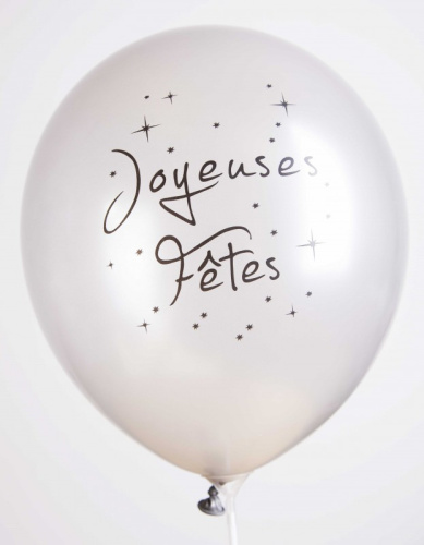 Ballons 12" - Imprimé 1 Face Joyeuses Fêtes Argent Métal - Sachet Cavalier de 20