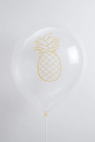 Ballons 12" - Transparent Imprimé Ananas Or - Sachet Cavalier de 20