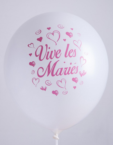 Ballons 12" - Imprimé 1 Face Vive les Mariés Rose et Blanc - Sachet Cavalier de 10