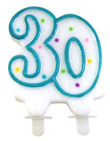 1 Bougie - Chiffre 30 - Couleurs assorties