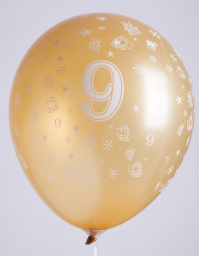 Ballons 12" - Chiffre 9 Imprimé Blanc TOT Assortis - Sachet Cavalier de 12