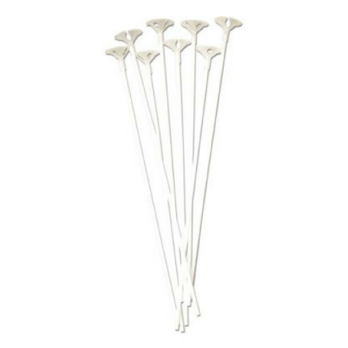 Tiges à Ballon Plastique Blanc - Sachet de 10
